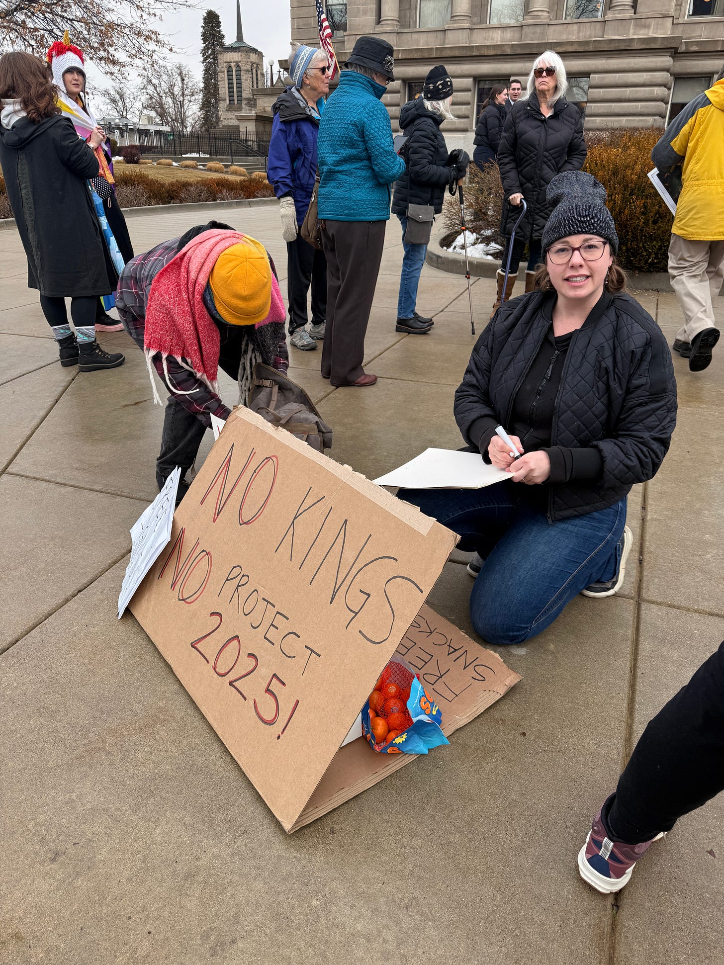 Many people held signs. There were an incredible amount of anti-Elon signs. And a fair amount of “fuck donald trump” signs which I always appreciate. One woman set up a booth as a sign-making station, quickly creating custom signs and handing them out. She also provided oranges and water—a small but thoughtful act of care.